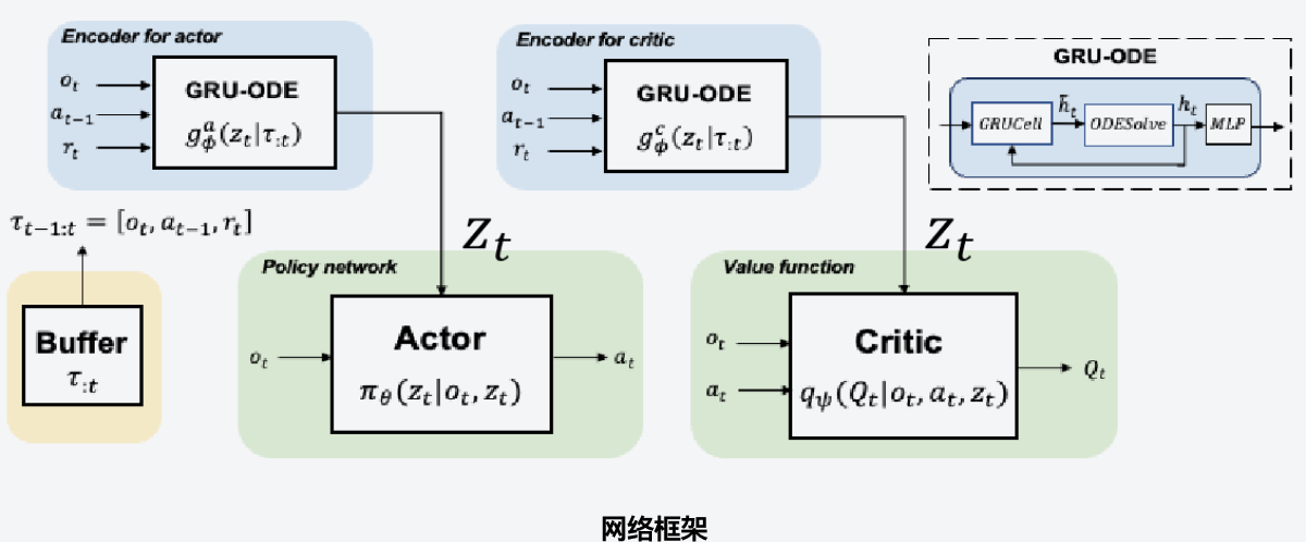 将常微分方程(ODE)引入部分可观测(POMDP)的强化学习环境中,理论证明了该设计的合理性。通过ODE进行隐空间状态的编码,在部分可观测MuJoCo环境上得到性能的提升,同时验证了ODE具有不规则时间序列学习的能力。